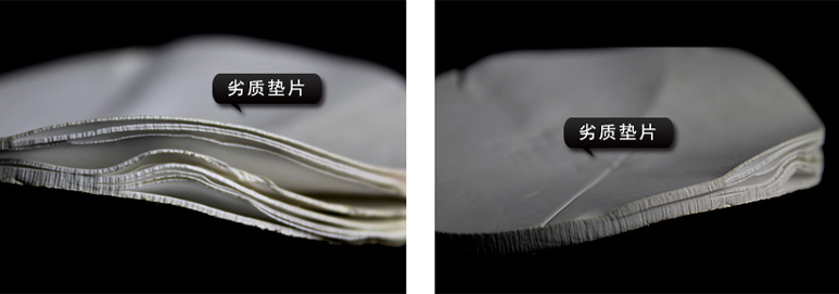 高仿進口聚四氟乙烯墊片是經(jīng)過多次、多層的施壓后粘連在一起,其也會有一定的彈性和壓縮量,但只要用力就可從中間撕裂,(如下圖)這樣的產(chǎn)品在使用中的耐壓性能和密封性能較差,容易造成泄漏。