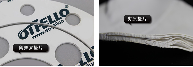 劣質(zhì)的聚四氟乙烯墊片的顏色明顯發(fā)污,采用的原料有可能為再生料或添加了其他物質(zhì)的原料,為其在使用過程中的密封效果埋下了隱患。
